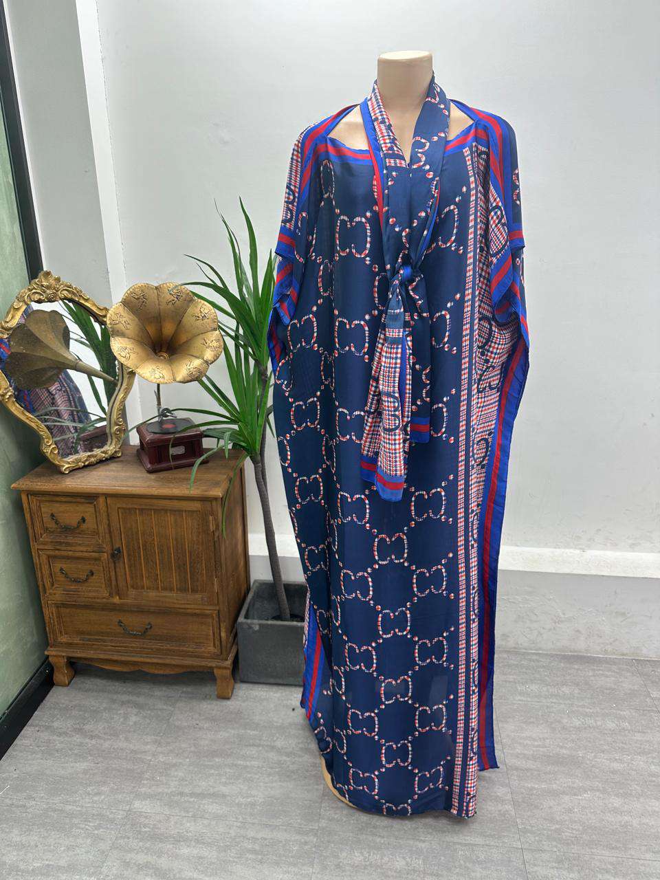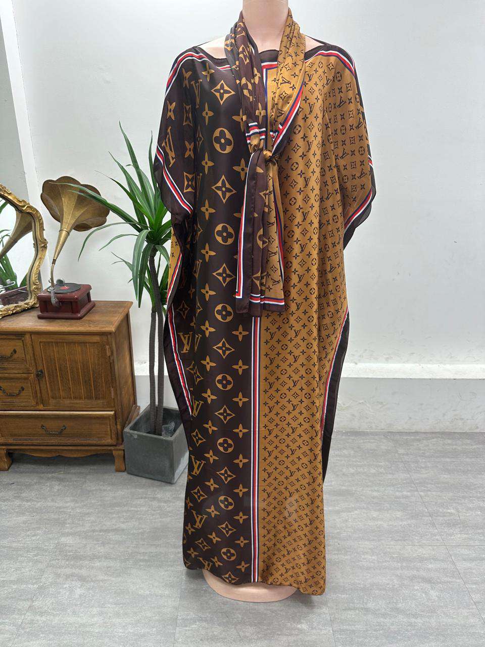 Short Description: Best Sell Women African Kaftan one Size Silk Dresses Fancy Flower Print Loose Silk Cover Up Outwear Kaftan Dress With Hijab.